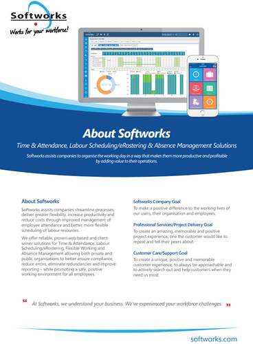 Softworks has supported organisations with workforce management for over 35 years. Founded in Ireland in 1990, we now operate across Ireland, the UK, the USA, Canada and Italy. Our workforce management software helps organisations improve operations, support teams and make smarter decisions.